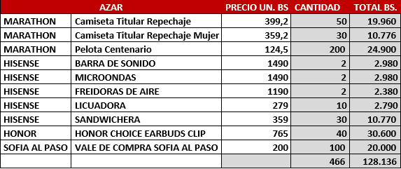 1. De acuerdo al punto 14, según el tipo de producto que el cliente compre saltará también uno o varios tickets para el sorteo conforme al Anexo 1, (Considerar)